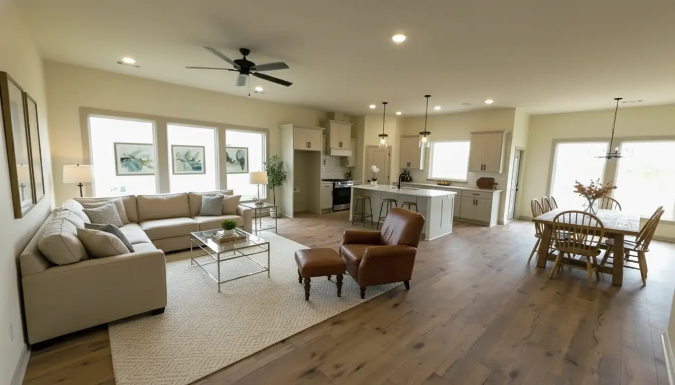 Introducing a charming open-concept home featuring three bedrooms and two bathrooms, designed for comfort and style. The kitchen is equipped with stunning quartz countertops and a convenient walk-in pantry, seamlessly integrating with the main living areas adorned with luxury laminate flooring. The bathrooms feature elegant tile, while the bedrooms offer cozy carpeting for added warmth. The master suite boasts a spacious walk-in closet and a luxurious walk-in shower. Abundant natural light fills the main area, creating a welcoming atmosphere. Additional highlights include a three-car garage, spray foam insulation for energy efficiency, and Low E windows that enhance comfort and reduce energy costs. This home is perfect for those seeking modern living in a thoughtfully designed space. We have added some staging photos to give you a more realistic view of what this home might look like furnished with your home decor.